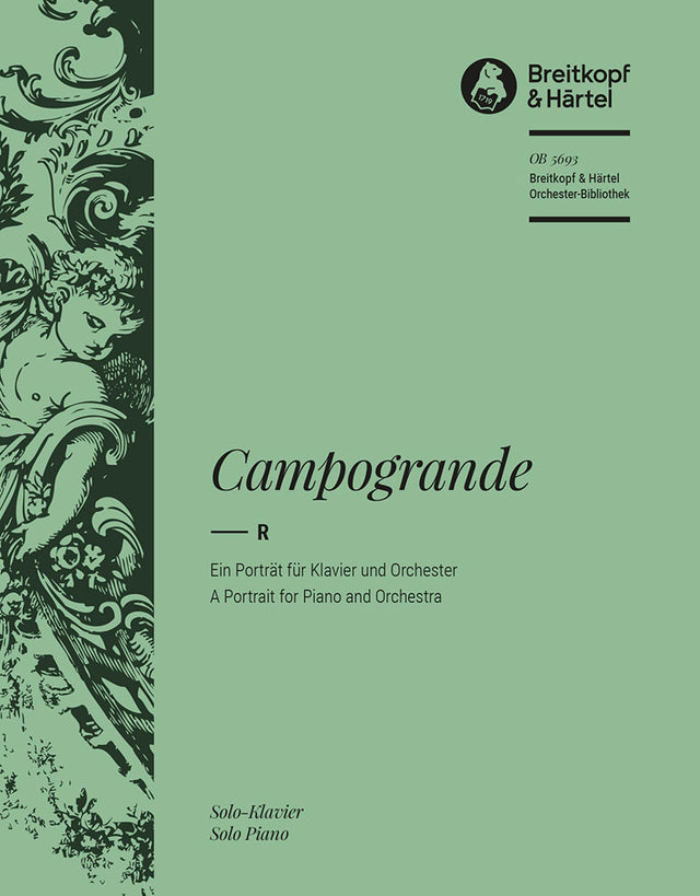 In 2012 Nicola Campogrande received a rather singular commission when a total stranger asked him to compose a musical portrait of his fiancée. The man knew exactly what he wanted: a concerto for piano and orchestra. After some reflection, Campogrande realised that he would be able to paint with music. It would never be possible, of course, to recognise the shape of the woman's face or the colour of her hair, but the score could evoke the way in which she occupied space and time, and the different movements of the composition would be like the faces on a rotating prism. Campogrande thus accepted the commission and the stranger sent him a few photos of his fiancée, spoke to him about her and, finally, introduced him to her. This is how R (A portrait for piano and orchestra) was born, first performed in April 2013 by Lilya Zilberstein with the Orchestra Verdi in Milan.