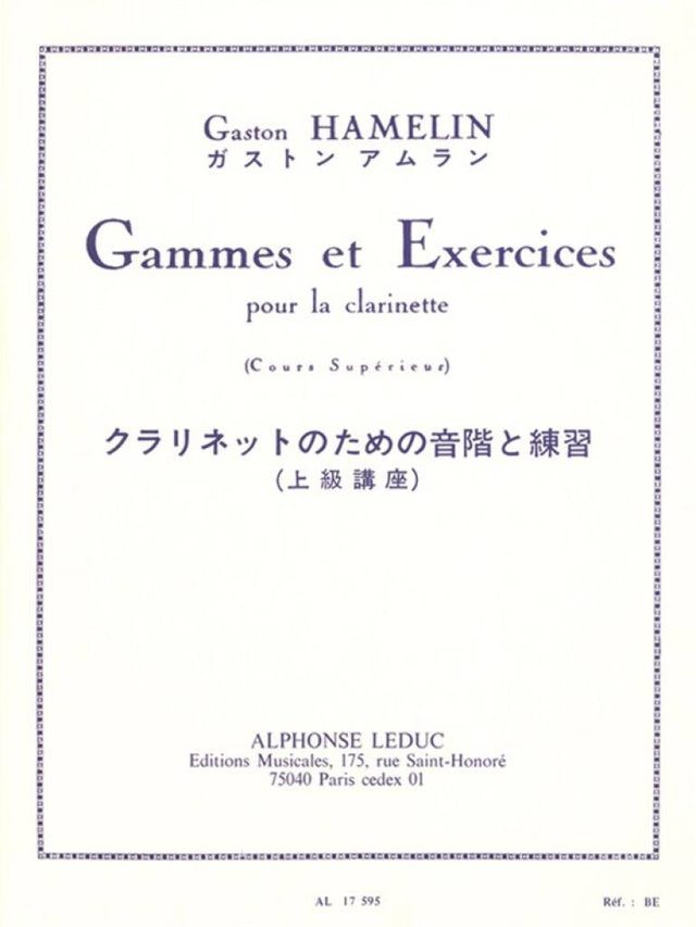 Written for upper-intermediate to advanced clarinet players, these scales and exercises are a set of studies tailored for advanced courses. Composed by Gaston Hamelin, this piece includes a really explanatory preface that describes the positioning and the annotations that are crucial to an understanding of the book. Ideal to continue developing skills and technique, they focus on mastering scales arpeggios and trills to obtain a fluidity of the tone.