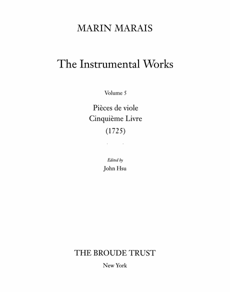 Marais: Pièces de viole, Cinquième Livre (1725)