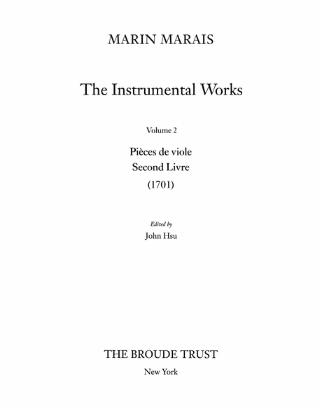 Marais: Pièces de viole, Second Livre (1701)