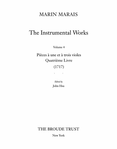 Marais: Pièces à une et à trois violes, Quatrième Livre (1717)