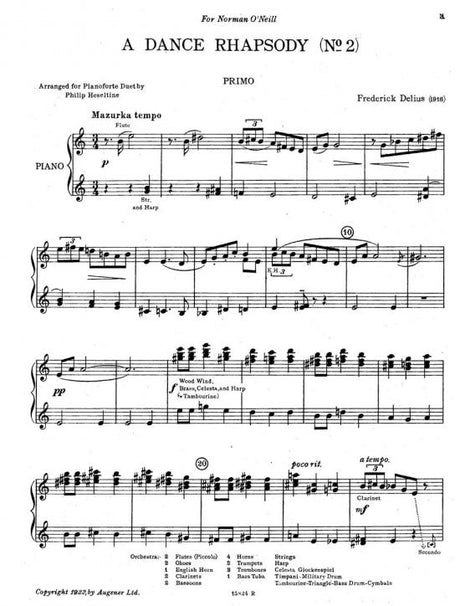 Delius: A Dance Rhapsody No. 1 (arr. for piano 4-hands)