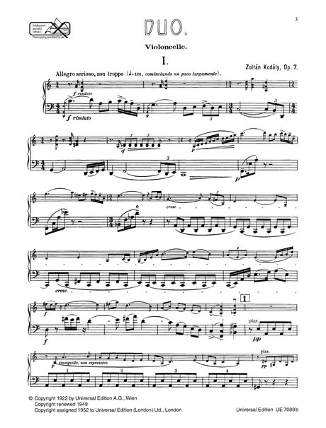 Kodály: Duo for Violin and Cello, Op. 7