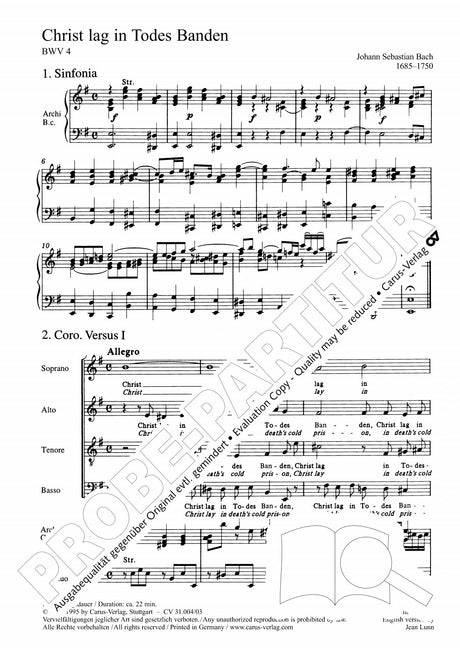 Options: Vocal Score, Study Score, Violin I, Violin II, Viola I, Viola II, Cello...Cantata for Easter Sunday
