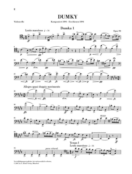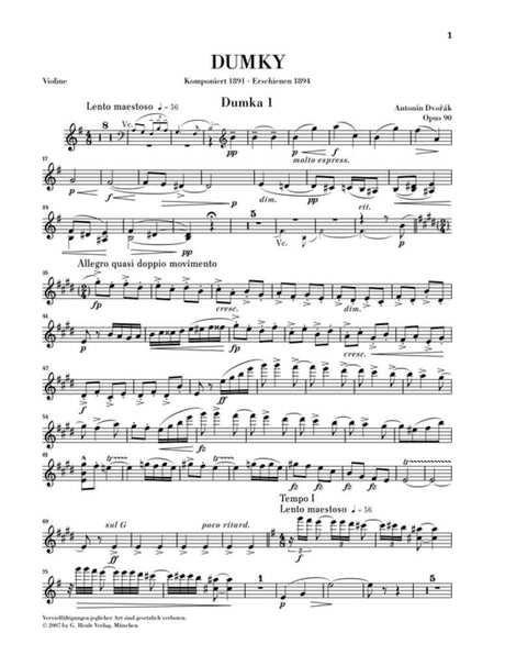 Dvořák: Dumky Piano Trio, Op. 90 (1 Piano, 4 Hands)
