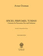 Concerto for percussion duo and orchestra (1st movement only) - piano reduction (solo parts and piano part). The title Spices, Perfumes, Toxins! refers to three substances that are extremely appealing, yet filled with danger. Spices delight the palate, but can cause illness; perfumes seduce, but can also betray; toxins bring ecstasy, but are deadly. The concerto combines Middle-Eastern drums, orchestral percussion, and rock drums with orchestral forces – a unique sound both enticing and dangerous. The work was written for the duo PercaDu. — Avner Dorman