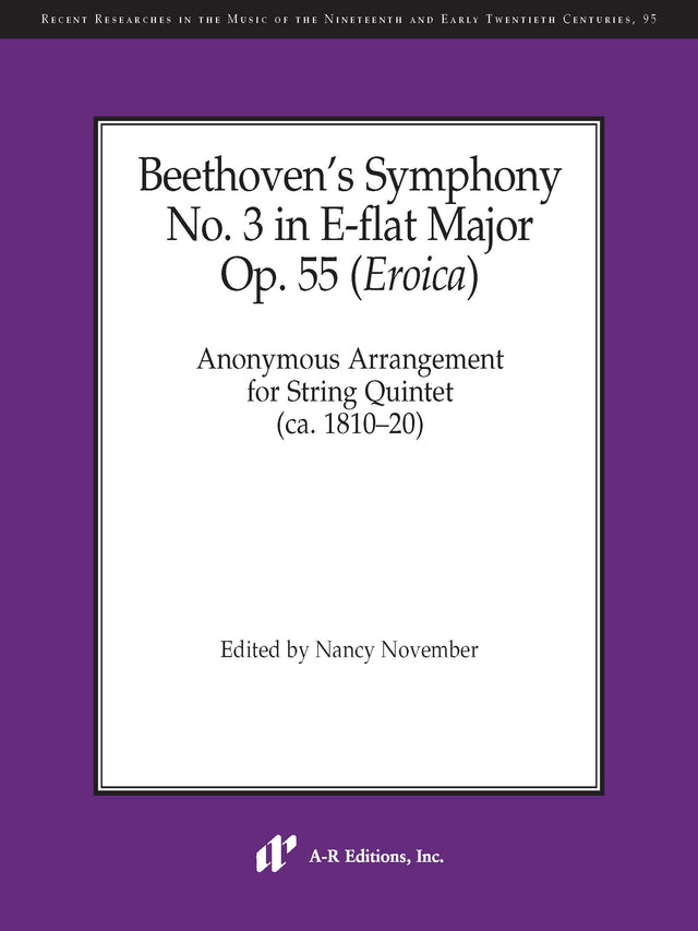 Chamber ensemble arrangements of large-scale works like symphonies were highly popular in Beethoven's day. They were an important means of disseminating music to a wide audience before the days of regular public concerts and long before the era of the gramophone. Beethoven's own symphonies were the subject of hundreds of arrangements produced over the course of the nineteenth century. The present edition is the first publication of one such arrangement of Beethoven's Symphony No. 3 in E-flat Major, Op. 55 (Eroica). This anonymous arrangement for a quintet of two violins, two violas, and cello with optional double bass is believed to date from between 1810 and 1820. The unique set of manuscript parts lacks the first violin performance part, which was lost at some stage and has been reconstructed by the editor based on the orchestral score. As the only known string quintet arrangement of the Eroica Symphony written during Beethoven's lifetime, the music of this edition fills a notable gap in the Beethoven symphony arrangement repertoire.