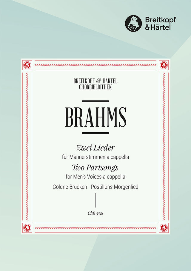 The musicologist Helmut Lauterwasser, staff member of the Répertoire International des Sources Musicales (RISM) in the work group located at the Bavarian State Library in Munich, recently discovered two choral pieces for men's voices by the young Johannes Brahms: Des Postillons Morgenlied (text by Wilhelm Müller) and Goldne Bruecken (text by Emanuel Geibel).