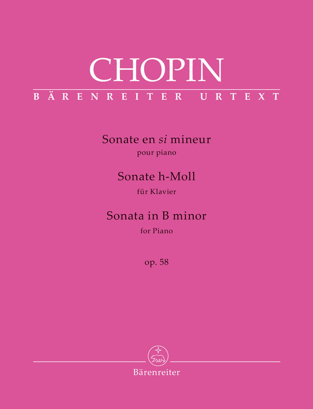The Piano Sonata in B Minor, Op. 58 constitutes Chopin's third and most significant contribution to the genre. An entirely new evaluation of the sources by the editor resulted in a revised reading of the work. This edition is based on the French first edition, a version to which Chopin added corrections until and even beyond the time of printing. Some of the most important variants can be found in the first movement (such as in m. 96), but also in the Largo and the Finale.