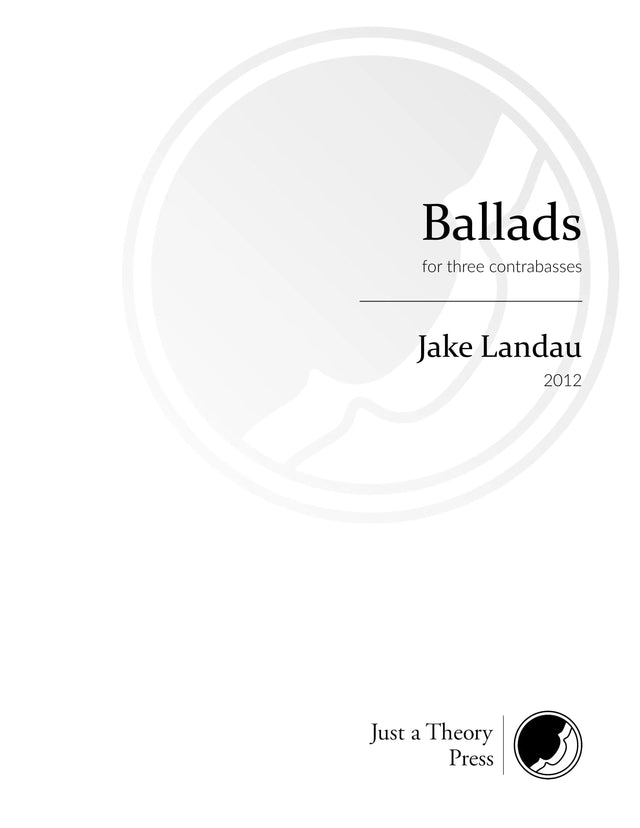 Virtuosic, character-driven, and harmonically-focused, "Ballads" is a short piece for three string basses. Like three individuals trying to tell the same story, the basses shuffle through material all pointed in the same direction, suggesting new language at one moment and expressing impatience at the next. Thus, three perspectives on the same story, or ballad, are performed. "Ballads" was written while I was a part of the New York Youth Symphony's Composition Program.