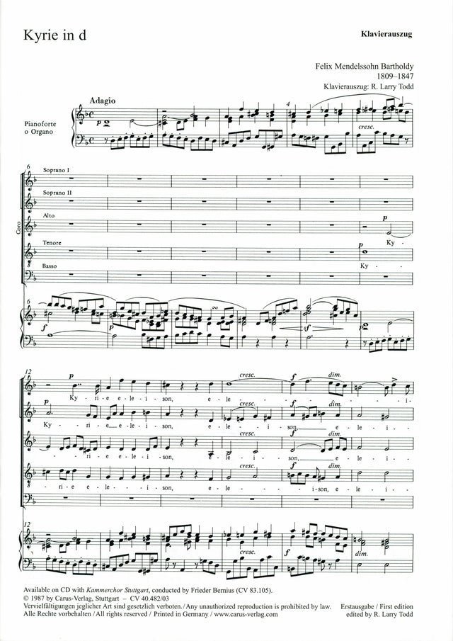 Abraham Mendelssohn brought his son to Paris in 1825, so that Cherubini could come to a conclusion about the abilities of the young composer. Mendelssohn presented this great Kyrie to Cherubini as an example.
