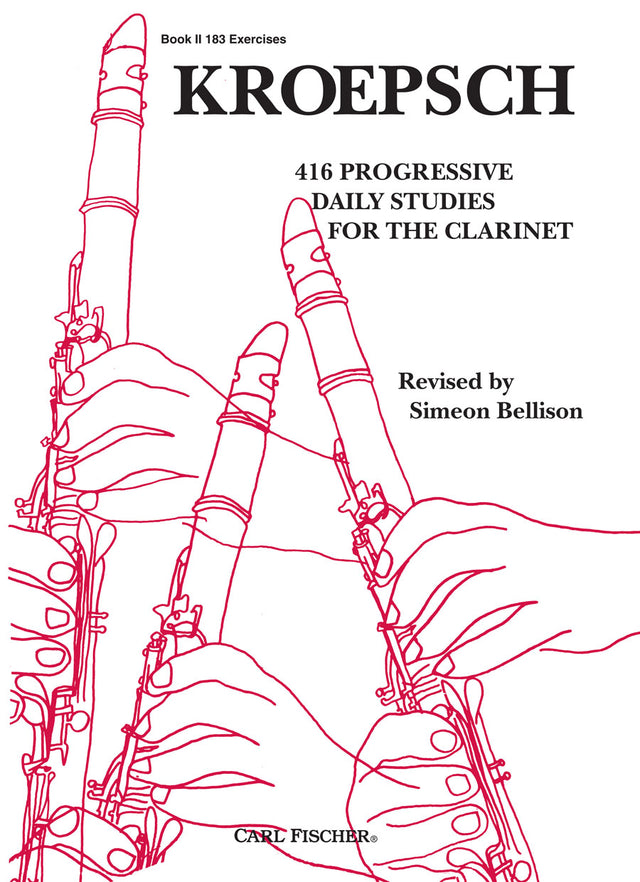 Fritz Kroepsch wrote 416 Progressive Daily Studies for the clarinet, edited by Simeon Bellison. Volume 2 begins where Volume 1 left off, in E-flat Major with various short exercises in different patterns progressing through each key. Most of the exercises are one or two lines, making it easy to isolate patterns for practice.