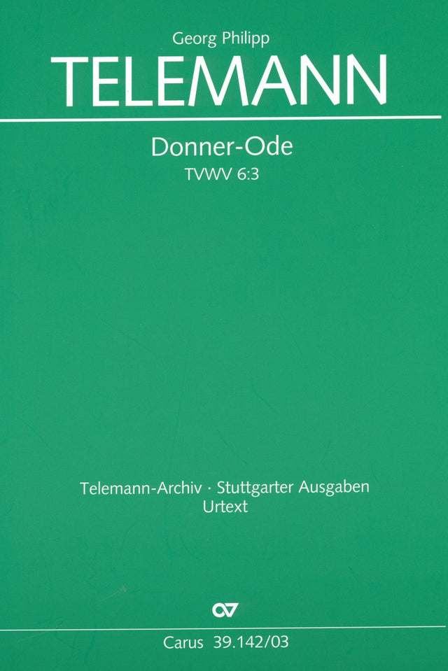 The ambitious late work of Georg Philipp Telemann, consciously dedicated to vocal composition, begins with the Donner-Ode (1756, No. 1760). As a symbol thunder represents the forces of nature, here in close connection to the traumatic earthquake of Lisbon in 1755. The characteristic arrangement of the vocal parts and the scoring with three trumpets, the soloistic use of the timpani and instrumental ensemble made this avant-garde work popular and well known already during the composer's lifetime. The new edition presented here takes into consideration important, newly discovered sources such as the autograph of the first part.