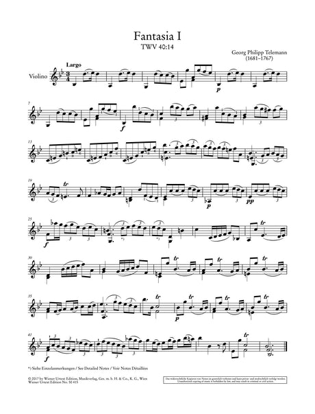 Telemann: 12 Fantasias for Violin, TWV 40:14–25
