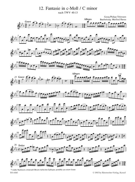 Telemann: 12 Fantasias without Bass, TWV 40:26–37 (arr. for flute)