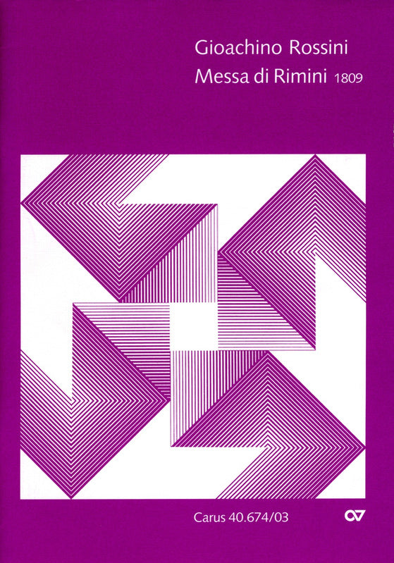 Gioachino Rossini's operatic works are framed by the composition of church music. in his youth he grew up surrounded by sacred music and through this music gained his first experience as a composer, which included learning how to write for the voice. Musically, he took stock of the wisdom he gained in his later years by composing key works such as Stabat Mater and Petite Messe solennelle. The Missa di Rimini belongs to Rossini's first creative period and was composed in 1809 for the local cathedral. It is a Kyrie – Gloria Mass in which the Gloria, in accordance with the Italian tradition is extended and divided in ten numbers. The Mass is characterized by the joy of making music and offers both soloists and choir rewarding, if not difficult musical tasks. The compositional demands of the Mass are demonstrated also by the presence of extended instrumental passages in the work.