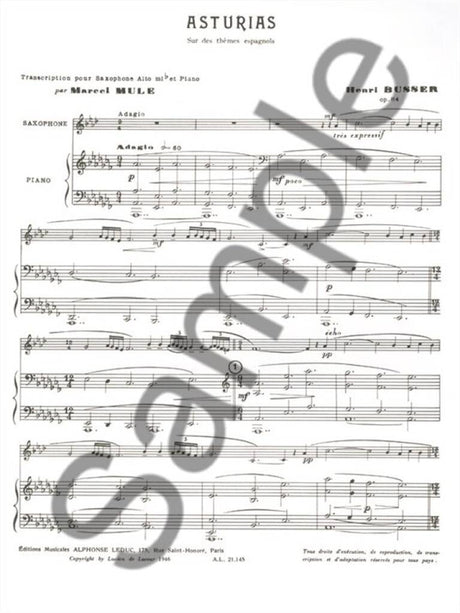 Busser: Asturias on Spanish Tunes, Op. 84 (arr. for alto sax)