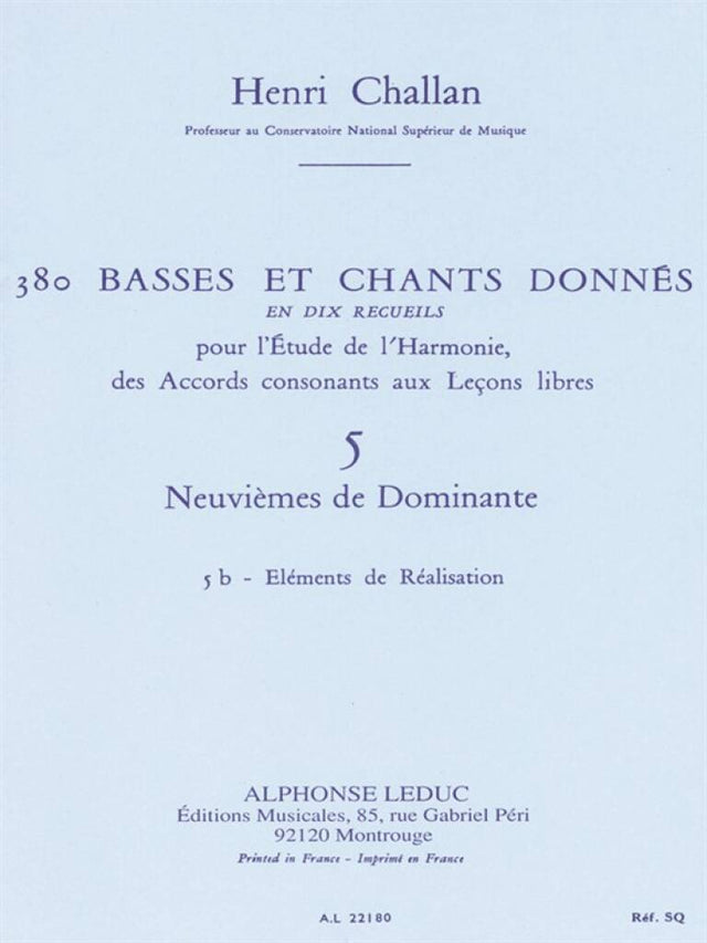 "As one of the fundamentals in the study of harmony, particularly for Baroque music, Henri Challan (1910-1977) provides an imperative aid to the understanding of Figured Bass. Challan, a French composer and music educator was appointed Professor of Harmony at the Paris Conservatoire in 1936. He compiled 380 Figured Bass Exercises during 1960, after a considerable amount of time working in the field. with Challan''s experiences in mind, 380 Figured Bass Exercises is very well-informed. Part B of the fifth volume provides 29 exercises in which the student can study differing clefs, chromaticism and accidentals in the context of figured bass. Challan''s 380 Figured Bass Exercises is essential to all harmony studies, given that the realisation of figured bass remains an important part of music education."
