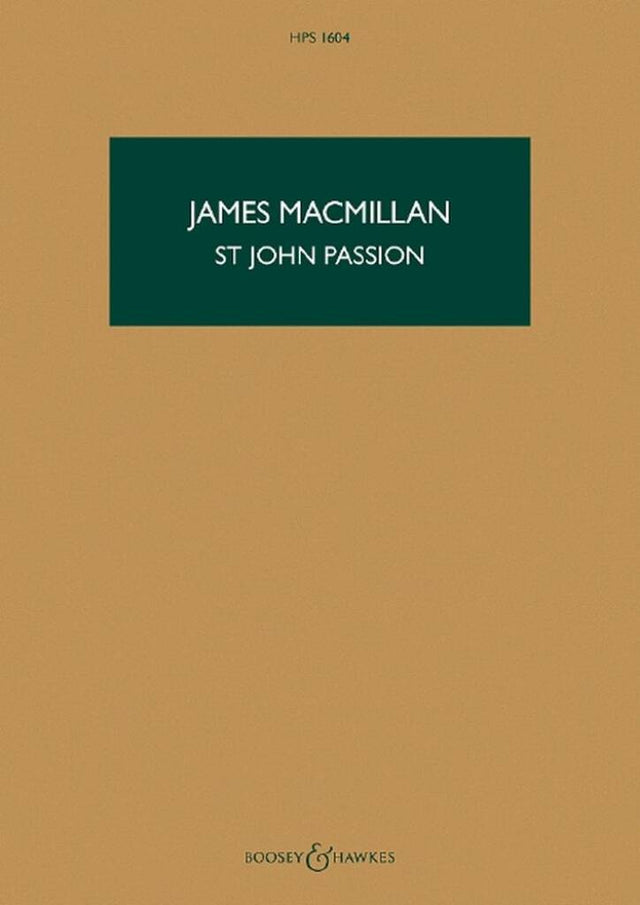 Scored for baritone solo, small 'narrator' chorus, large chorus and orchestra, MacMillans first Passion setting was composed in 2007. Lasting 87 minutes the work is divided into two parts, with 10 movements overall. As Paul Spicer has commented, "The originality of the St John Passion lies in MacMillan's ability to mix old with new, rather in the manner of Bach in his day. There are passages of sumptuous polyphony and there is a fresh look at the text where passages of Latin are interspersed with the Gospel story in English. in movement seven ('Jesus and his Mother'), MacMillan introduces not only part of the Stabat Mater but also his own words ('Lully, lulla, my dear darling'). The final movement, which is purely orchestral, is a kind of via doloroso march with a Scots lament over quite brass chords. The string writing here, with its elegiac cello lines, is deeply reminiscent of the early 20th-century English school. This should be the War Requiem of the 21st century."