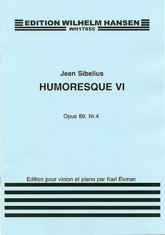 The Humoresques, which for publication were divided into two groups, Op. 87 and, Op. 89, were all composed during 1917. The astute violinist will find that the seemingly clear-cut contours of Humoresque No. 6, a delicately-framed piece, are a formidable musical challenge indeed.