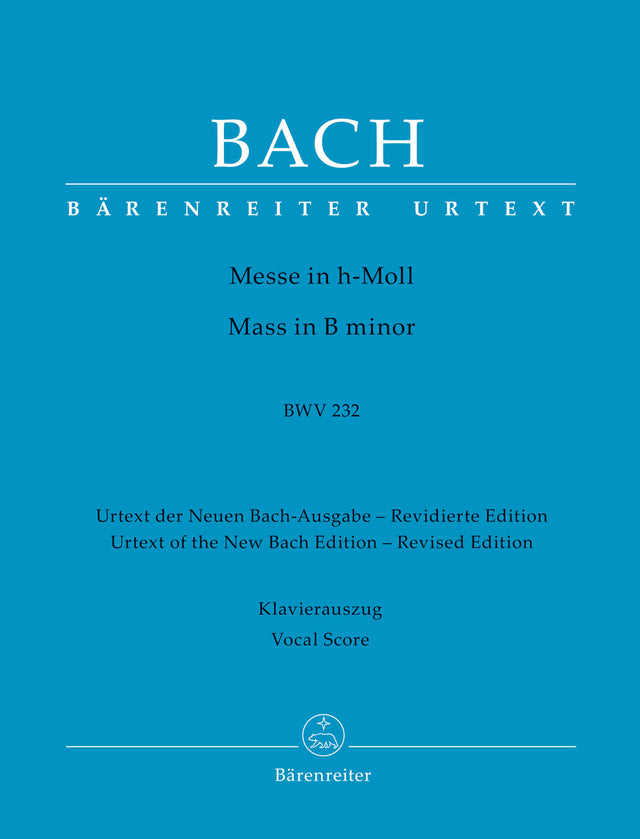 The New Bach Edition (NBA) volume of J. S. Bach's Mass in B Minor BWV 232 has been the definitive edition for generations of singers and musicians. However the Bach Archive Leipzig in conjunction with Bärenreiter are constantly striving to bring new discoveries of editorial research to the fore. It is precisely for this reason that a new revised edition of the Mass in B Minor will now appear. The Urtext performing edition is based on the first volume of the new 15 volume series New Bach Edition-Revised (NBA rev).