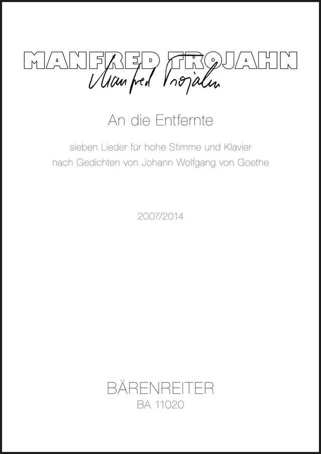 - Work: An die Entfernte (7 Songs after poems by Johann Wolfgang von Goethe) (2007)