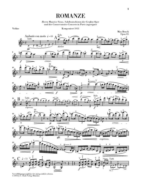 Bruch: Romance in F Major, Op. 85 - Version for Violin