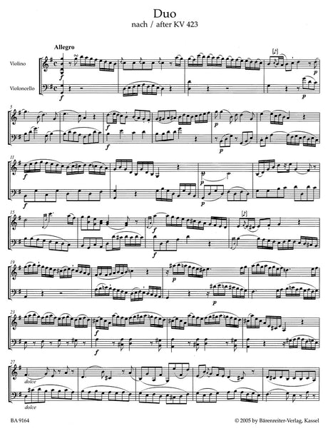 Mozart: 2 Duos for Violin and Cello