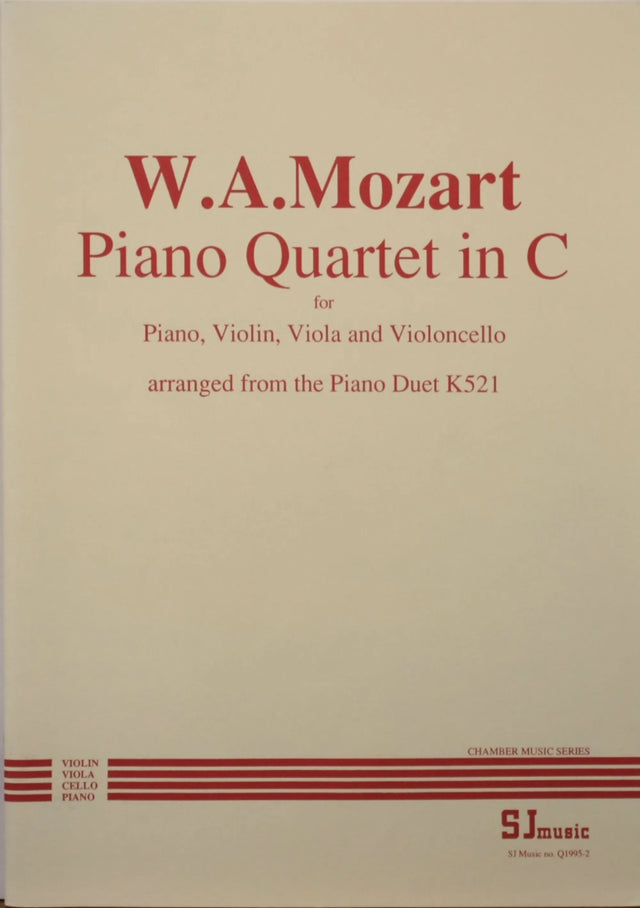 This piano quartet started life as Mozart's piano duet, K. 521. John Cooley's arrangement of it for piano quartet is very successful, and brings this lovely piece into the hands of string players. The last movement seems to be a tribute to J.C.Bach, whom Mozart met in his youth, as it has a close thematic resemblance to one of Bach's piano duet movements in the same key.