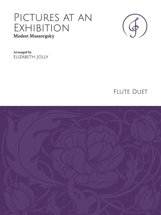 Composed in 1874 for solo piano, Modest Mussorgsky's Pictures at an Exhibition was inspired by an art exhibition featuring works by his late friend, Viktor Hartmann. Each movement portrays a specific image, linked by a recurring "Promenade" theme that reflects Mussorgsky's walk through the gallery. This advanced flute duet arrangement is scored for Flute 1 doubling on piccolo and Flute 2 doubling on alto flute, capturing the essence of the original while exploring the expressive possibilities of the flute family.