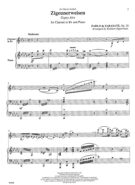 Sarasate: Zigeunerweisen, Op. 20 (arr. for clarinet and piano)