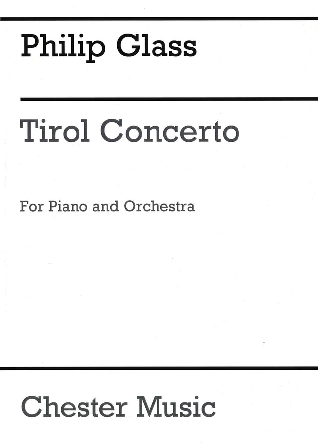 Tirol: Piano Concerto by Philip Glass was premiered at the Klanspuren Festival in Tirol, Austria and written with the support of the Stuttgart Chamber Orchestra and the Tirol Tourish Board. Glass studied sound documents and sheet music of Tyrolese folk-music, using this source material directly as the basis for the concerto.