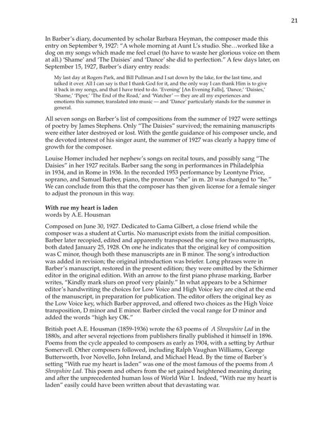 Barber: Under the Willow Tree from 'Vanessa' (arr. for 2 voices & piano)