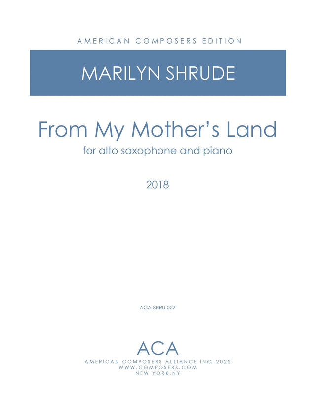 From My Mother's Land ("Bogurodzica") is based on the beloved Polish hymn, Bogurodzica, which originated in medieval times. John Sampen and Marilyn Shrude gave the world premiere on June 2, 2018 at the International Saxophone Festival in Szczecin, Poland. The work is dedicated to Professor Darek Samol.