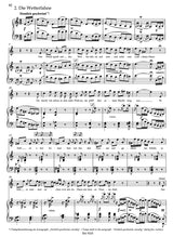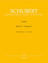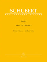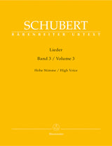 The volume contains not only well-known lieder such as "Der Wanderer an den Mond" and "An die Musik", but also Schubert's best-known song cycle Die Winterreise. The appendix contains five lieder from this cycle ("Wasserflut", "Rast", "Einsamkeit", "Mut" and "Der Leiermann") in the keys in which Schubert originally wrote them. for the first edition these were transposed into lower keys by him or his publisher Haslinger. Therefore, the volume for high voice contains a further attraction for tenors whereas the tessituras in the main part of the volume are more suitable for a high baritone. in the editions for medium voice and low voice, the appendix contains alternative higher versions for these songs.