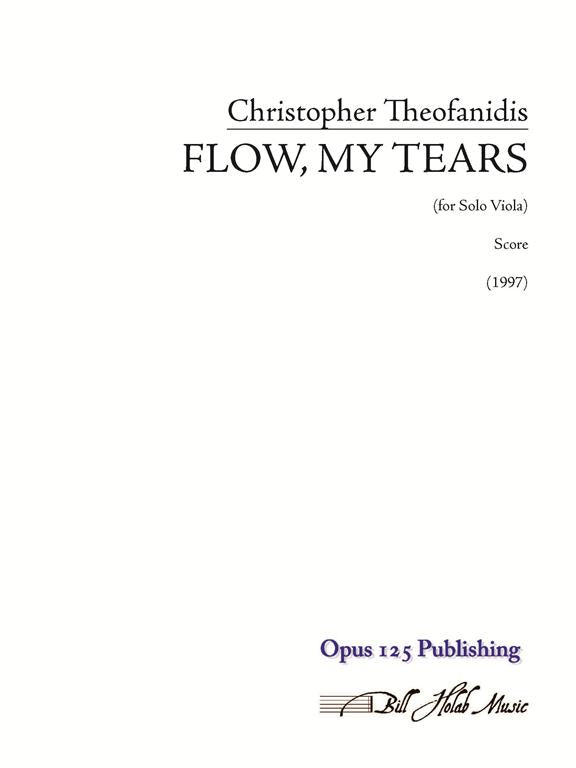 Flow, my tears is a 7-minute elegy for solo viola, written in memory of Jacob Druckman, who was an early mentor of mine. The piece twice quotes a falling fifth motive from Jacob's work, Nor Spell, Nor Charm. My piece was originally written for Carol Rodland. There are solo versions of this work for viola, violin, ‘cello, and guitar.