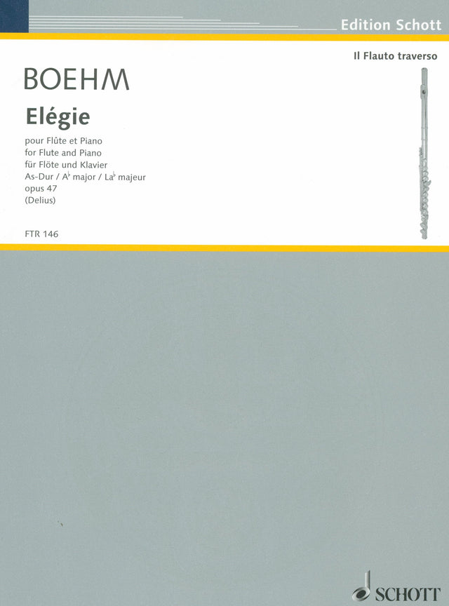 Theobald Böhm (1794-1881), who has become world-famous especially as inventor of the modern flute, was an equally respected flute virtuoso and composer in his time. Elégie, Op. 47, his last work, was published by Schott in 1880 and had been available only as a reprint for a long time. Now, this important work is finally available in a revised version in modern notation.