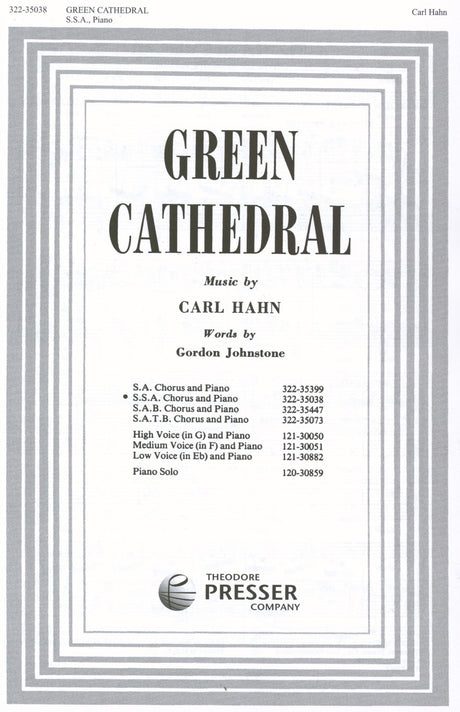 Hahn: Green Cathedral (Version for SSA Chorus & Piano)
