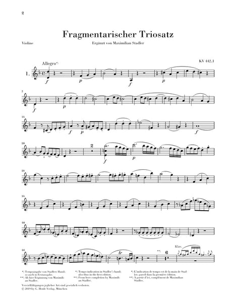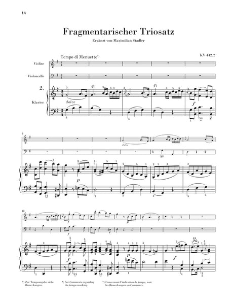 Mozart: Three Movements for Piano Trio, Fragments K. 442