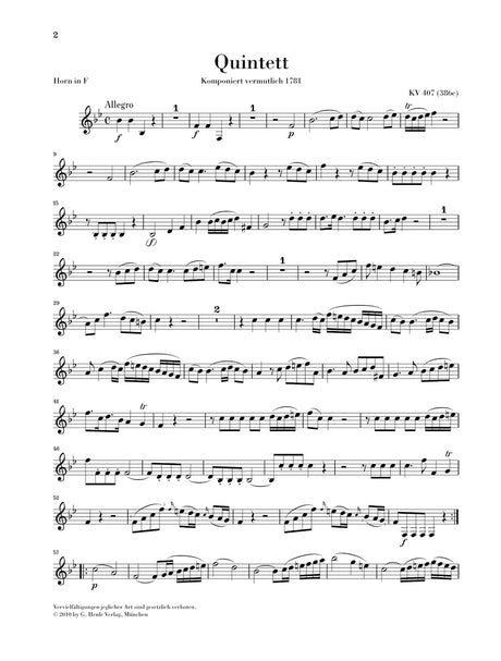 Mozart: Horn Quintet in E-flat Major, K. 407 (386c)