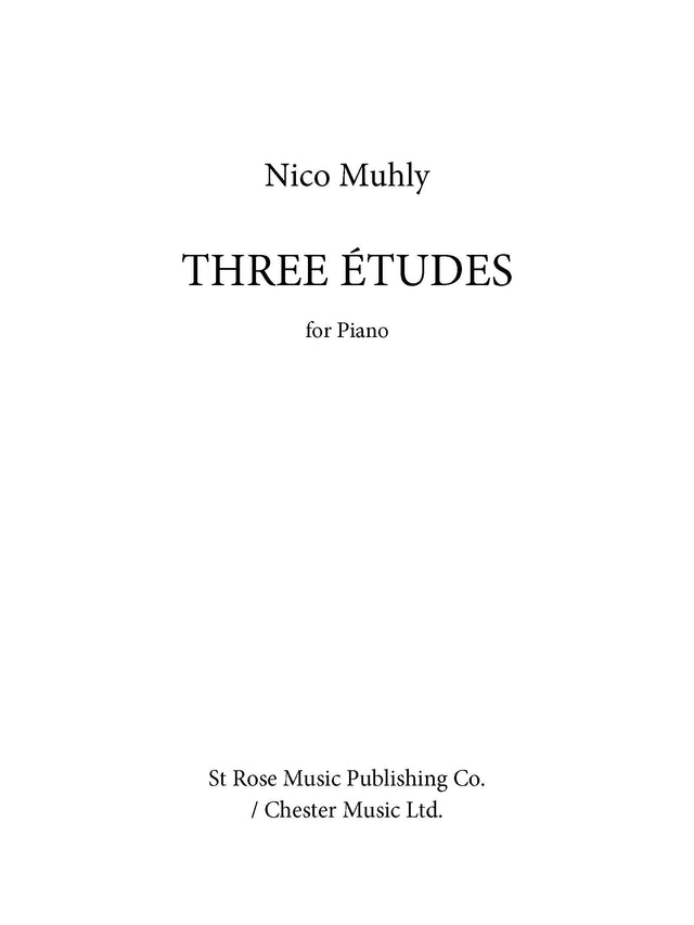 These three études were written from January to March 2003 and were composed partially for performance in the VisionIntoArt/RockHotelPianoFest in New York City. Étude #3 ("Running") was premiered by Eric Huebner and is dedicated to him.