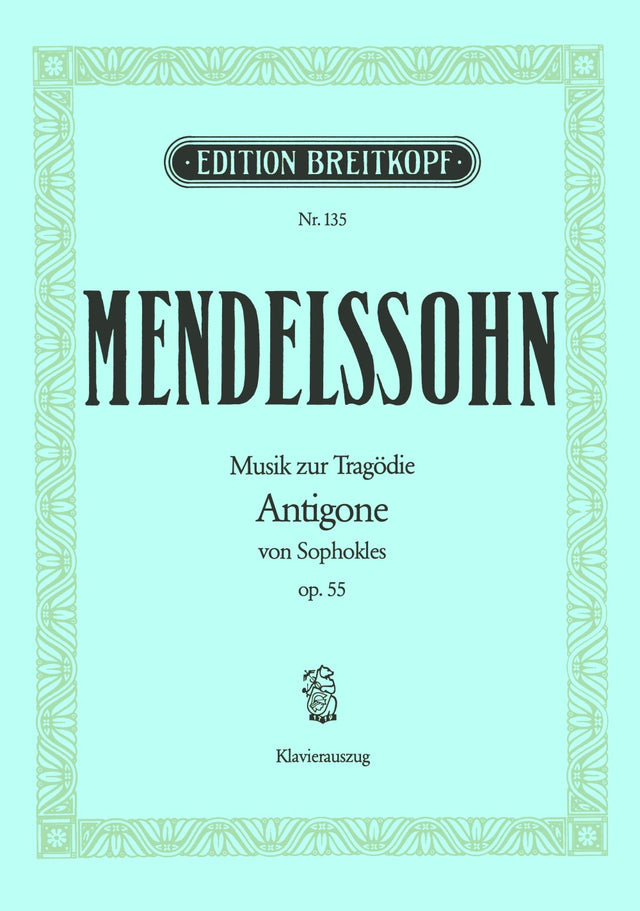 "Antigone" has attracted a considerable amount of attention recently thanks to concert Performances and a recording. The piano reduction, ed. by J. Draheim, is a thoroughly revised new printing of the "Volks-Ausgabe No. 135", first published in 1878.