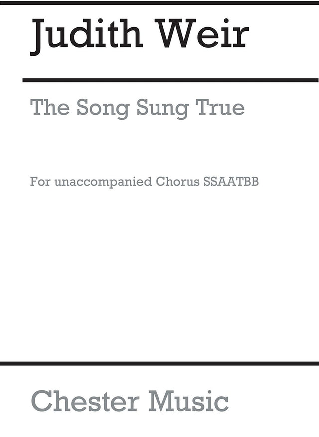The Song Sung True was expertly composed by Judith Weir . The piece was commissioned by Lawyers' Music, in memory of Helen M. Sibthorp , singer and promenader. The first performance of The Song Sung True was on the 4th December 2013, at St Lawrence Jewry, London, performed by London Lawyers' Chorus and conducted by Christopher Oakley. Judith Weir is a British composer, best known for her Operas and Theatrical works, although she has also achieved international recognition for her Orchestral and Chamber works. Weir 's music is often created from ideas from medieval history, as well as the traditional stories and music of her native Scotland.