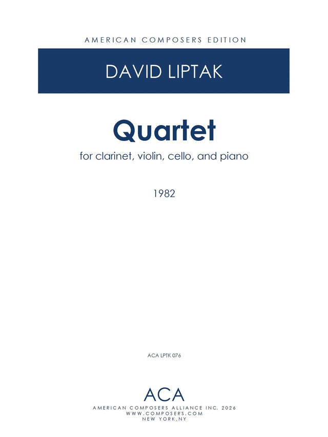 Quartet was written in 1982 for the performers who gave the premiere at Wigmore Hall, London. The 2026 edition provides corrections and other useful edits. A dramatic work, the three movements present images of sleep and wakefulness during the night's passage. The 2025 edition is made with grateful thanks to David Harman, whose generosity and support of this effort has been central to its creation.