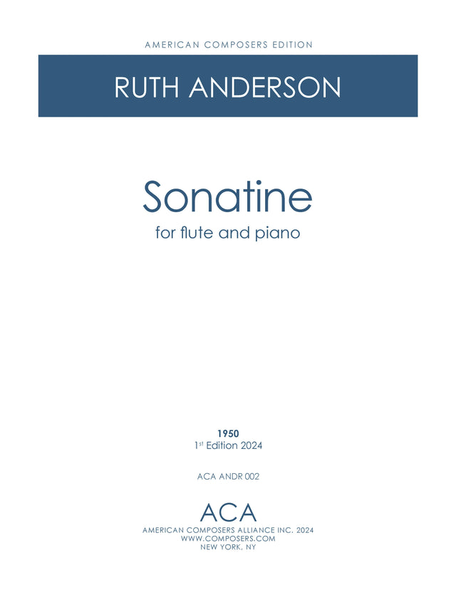 Ruth Anderson's small Sonatine, for flute and piano, is a charming beginning work that introduces the student to several of the musical tendencies of the 20th Century while remaining firmly grounded in near-traditional tonality and melodic material.