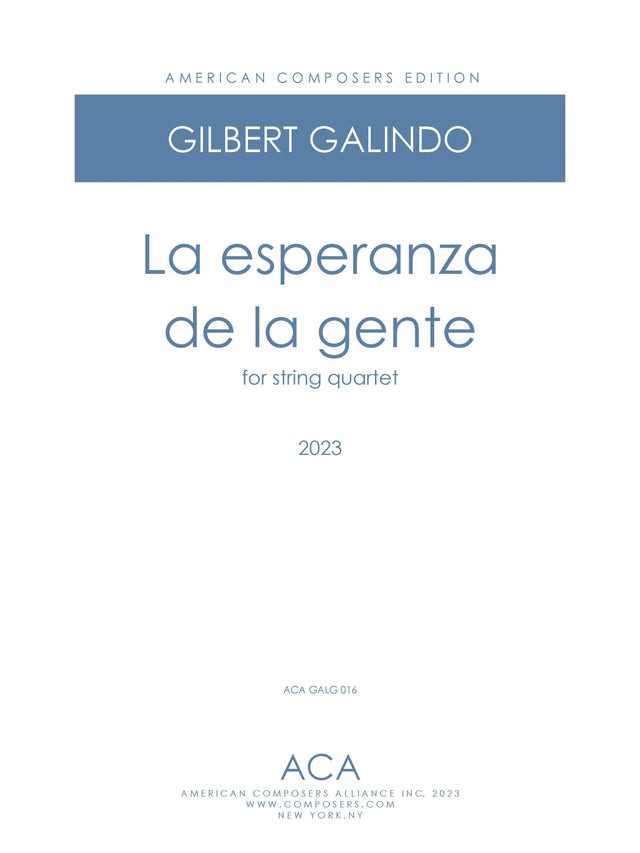 "La esperanza de la gente" was commissioned by Access Contemporary Music for the Relevant Tones podcast in honor of Jovita Idár, a Mexican-American journalist, activist, and suffragist who lived in the first half of the 20th century and was featured in the current New York Times Overlooked obituary series. Jovita Idár predated the Chicano civil rights movement of the '60s and '70s by nearly half a century, bringing to attention issues that are important: education, equal rights, fair treatment of Mexican-Americans, and freedom of the press. Her advocacy work even caused a confrontation with the Texas Rangers, who sought to destroy the printing press of "El Progreso", a newspaper for which she worked. On the first day of the encounter, she bravely stood in front of the offices, preventing the Texas Rangers from destroying the printing press, but the next day they succeeded. This did not stop her from continue advocating for equal rights for Mexican-Americans in Texas as she became a great role model for any who seek to advocate for justice.