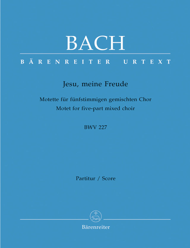 All of Bach's six authenticated motets were written between 1723 and 1727 for St Thomas' Church, Leipzig, where Bach was appointed as director of music in 1723. During this period, Bach composed most of his cantatas, and it seems likely that for ordinary Sunday services he used existing motets from the seventeenth century tradition, reserving his own motet compositions for special occasions. Four of his six motets were written for the funeral services of prominent members of the St Thomas' congregation. Jesu, Meine Freude (BWV 227), the longest, most musically complex and earliest of the six, was written in 1723 for the funeral of Johanna Maria Käsin, the wife of Leipzig's postmaster. Jesu, Meine Freude BWV 227 is a beautifully constructed motet for five-part mixed choir, by J.S. Bach. This Urtext edition provides you with a clear and accurate realisation of the composer's original intentions and includes thoroughly detailed editorial markings and suggestions, as edited by Konrad Ameln.