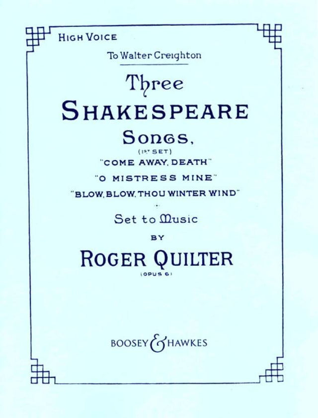 Contents: Come Away, Death • O Mistress Mine • Blow, Blow, Thou Winter Wind.