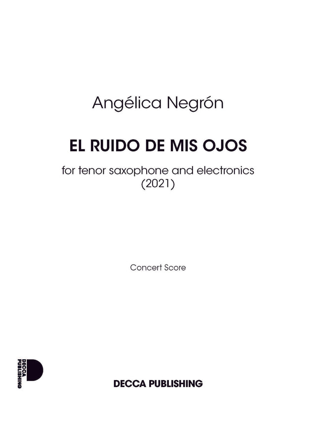 "El ruido de mis ojos" (The noise from my eyes) is a piece inspired by feelings of anxiety and emotional stress. I often write music hoping to find an escape from these unpleasant feelings but this piece conversely sits in that discomfort. It aims to confront these emotions in an attempt to better understand the process I go through as I experience anxiety. The piece seeks to evoke the emotional weight of bottling things up and pretending things are fine when they're clearly not. It looks for solace and release without necessarily always being successful at finding it. The piece was commissioned by the Elise Hall Competition for Emerging Saxophonists and Sarah Hetrick. The Elise Hall Competition for Emerging Saxophonists aims to encourage and support the professional and artistic development of young female-identifying, trans, non-binary, and equity seeking saxophonists.