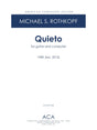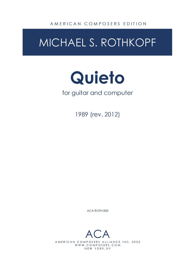 Quieto was progressively composed in series of creative spurts. I began work on the composition in the summer of 1987, took it up again over several years and completed the work in 2012. The analog electronic sounds were created at the Electronic Music Center of Columbia University as well as computer generated layers using MIDI and Max generated sounds.